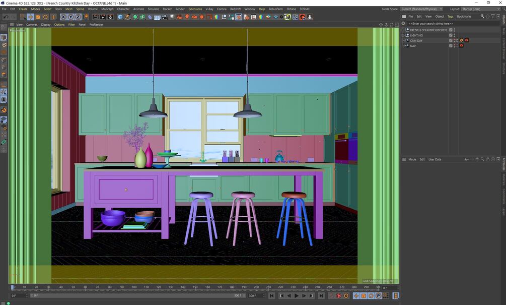 Corona Cinema 4D Scene files - French Country Kitchen (Interior CGI)